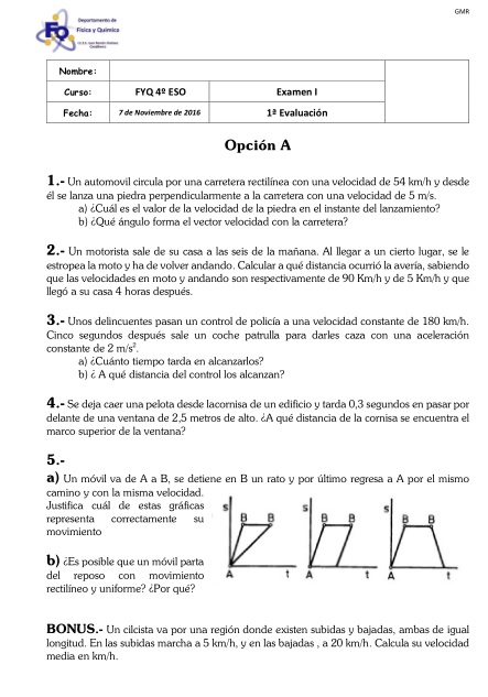 Exámenes de Física y Química resueltos de todas las evaluaciones tomados del I.E.S. Juan Ramón Jiménez