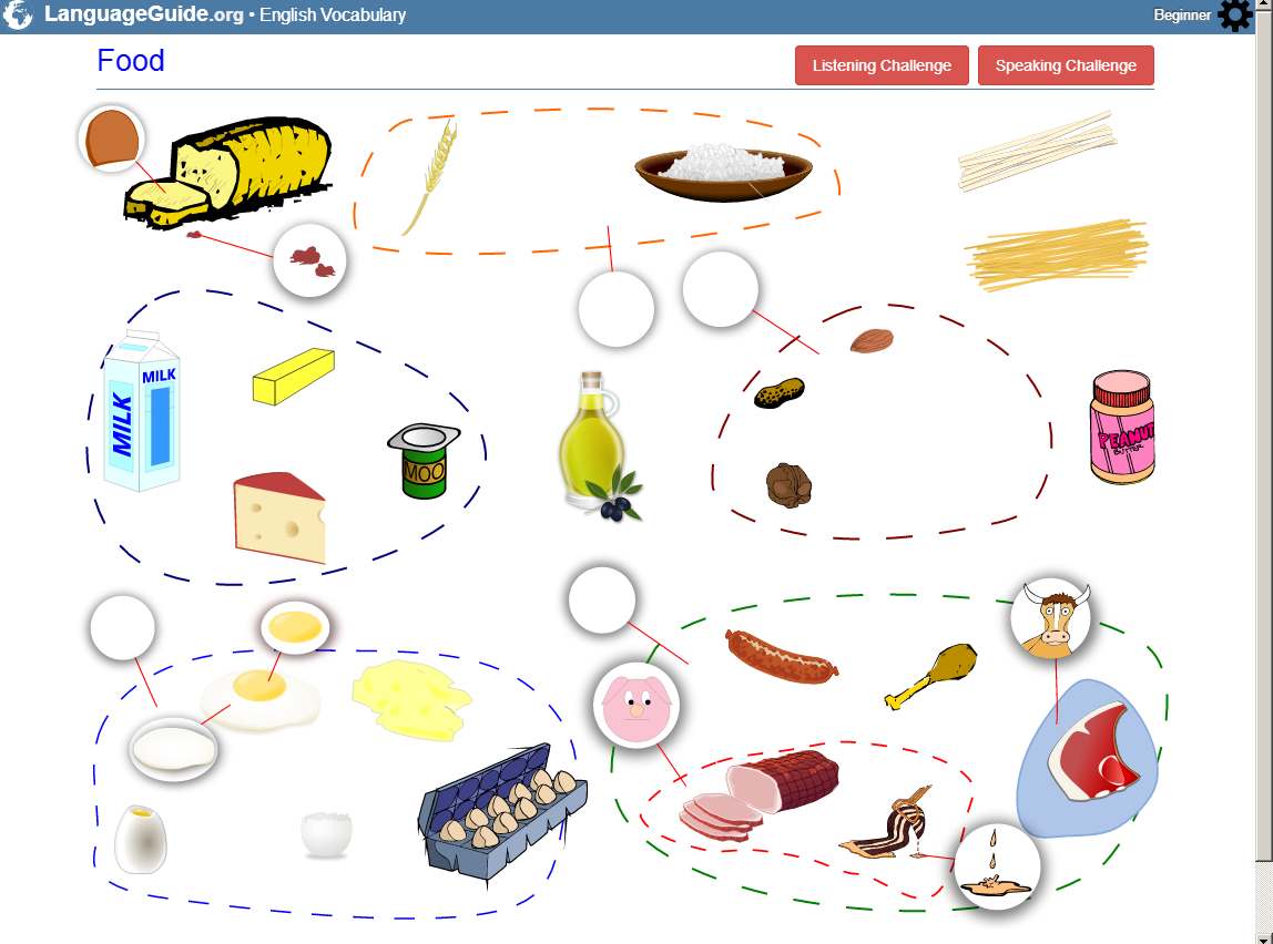 Tenemos doce escenarios a escoger donde nos muestran el vocabulario y frases usuales con el mismo, ejercicios, buscador y juegos