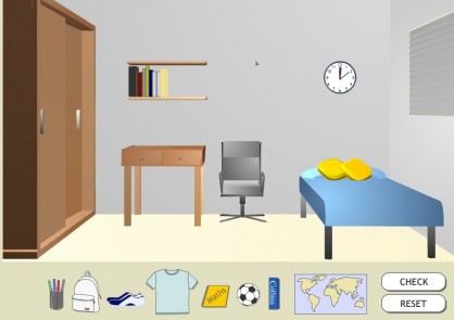 Preposiciones in,on, under,next to, over Tenemos que poner los objetos donde nos indican. Guardar Share this:TwitterFacebookImprimirPinterestMe gusta esto:Me gusta Cargando... 15/01/2012 por Maria José Deja un comentario