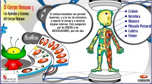 Otra Actividad de Junta de Castilla y León animada por un pequeño extraterrestre donde nos aparecen todos los sistemas y apartatos del cuerpo, pena no están los sentidos